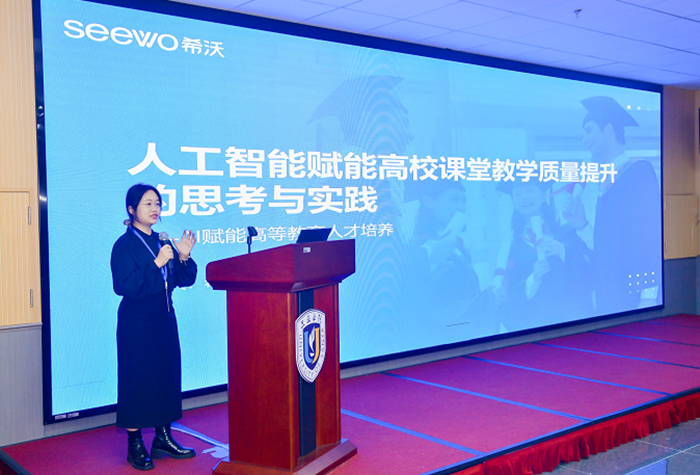 會上,視源股份未來教育集團(希沃)解決方案顧問申輝圍繞《人工智能賦能高校課堂教學質量提升的思考與實踐》進行分享。她提到,高校肩負著人才培養的重任,而高校課堂作為教學工作開展的主陣地,是傳遞專業知識和培育未來人才素質素養的關鍵環節。希沃多年來與高校一起探索“環境升級-模型應用-平臺服務-生態共建”的模式,支撐高校課堂教學質量提升,共建高校教學高質量發展的智能化服務體系。