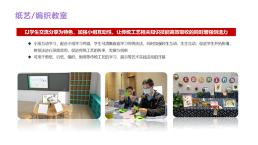 公司研發的智慧美育裝備產品結合國家政策與各地美育教學實地應用,以藝術新課標下美育素養評價為核心,貫穿軟件、硬件、課程、美育環境建設、服務于一體的一站式美育建設解決方案。為區域及學校提供藝術類功能教室、美育課程、美育評價、美育教學監測、美育大數據、美育作品展演等相關全應用場景解決方案。