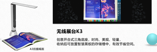 海天地根據市場最新動態,研發配合納米黑板無線視頻展臺K3,已經在全國多地配合納米黑板完成組合解決方案。機身采用多角度的調節設計,輕松實現A4幅面;A3幅面;超A3幅面切換。采用Type—C的充電接口設計,積大方便客戶快速充電。