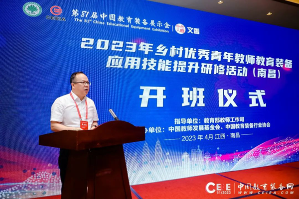 開幕式上,中國教育裝備行業協會副會長夏國明在致辭中表示,本屆展示會是黨的二十大后舉辦的首屆中國教育裝備展示會,是將黨的二十大對教育強國建設戰略部署轉化為實際行動的重要舉措,具有特殊的意義。他介紹,本屆展示會重點展示數字技術和人工智能在教育裝備領域的新應用、新成果、新產品和新的整體解決方案,為廣大師生、教育工作者和企業搭建交流平臺。