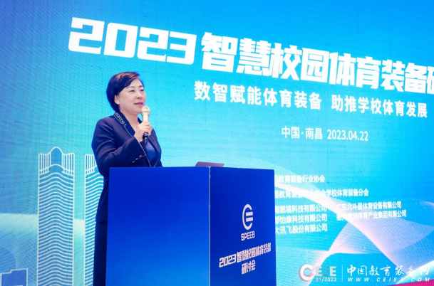 4月22日,由中國教育裝備行業協會指導,中國教育裝備行業協會學校體育裝備分會(以下簡稱分會)舉辦的“2023智慧校園體育裝備研討會”在南昌舉辦。本次研討會主題為“數智賦能體育裝備 助推學校體育發展”,是第81屆中國教育裝備展示會同期官方活動之一。中國教育裝備行業協會副會長、教育部宣傳教育中心副主任夏越,中國教育裝備行業協會學校體育裝備分會常務副理事長、清華大學教授張威出席會議并致辭。會議由分會專家王欣義博士主持。教育部及協會領導,各省市教育廳教育裝備管理部門、體育衛生與藝術教育處,省市裝備行業協會,學校及企業負責人230余名代表參會。