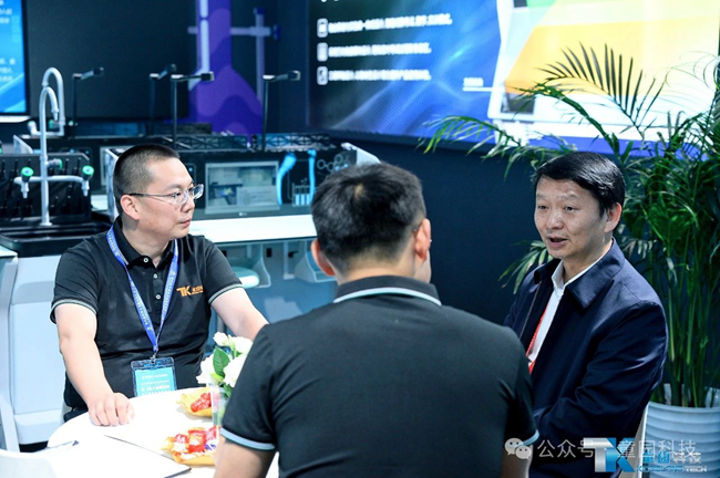 展會首日,參加開幕式的部分領導、嘉賓蒞臨童園科技展位參觀指導,廣東童園科技有限公司副總經理胡剛向各位領導嘉賓介紹了童園科技新產品和全新的戰略目標。各位領導們對童園科技理化生智能實驗室、中考實驗操作考評系統、AI評分系統等教育信息化系列產品給予了高度評價;并充分肯定了童園科技以科技引領潮流,智慧驅動創新與教育改革深度融合的戰略發展方向。