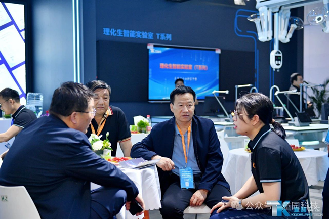 展位現場,各位嘉賓通過工作人員的講解體驗童園科技理化生智能實驗室的最新產品,對如何通過應用智控系統來完成實驗考試教學中給排水、用電、廢氣處理等問題,對實驗環境實時監控、實驗設備智能控制、實驗操作教考評等實際應用有了充分的了解。