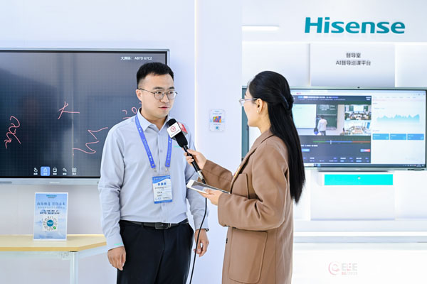 展會現場,青島海信商用顯示股份有限公司教育解決方案工程師馬本順接受本站采訪。