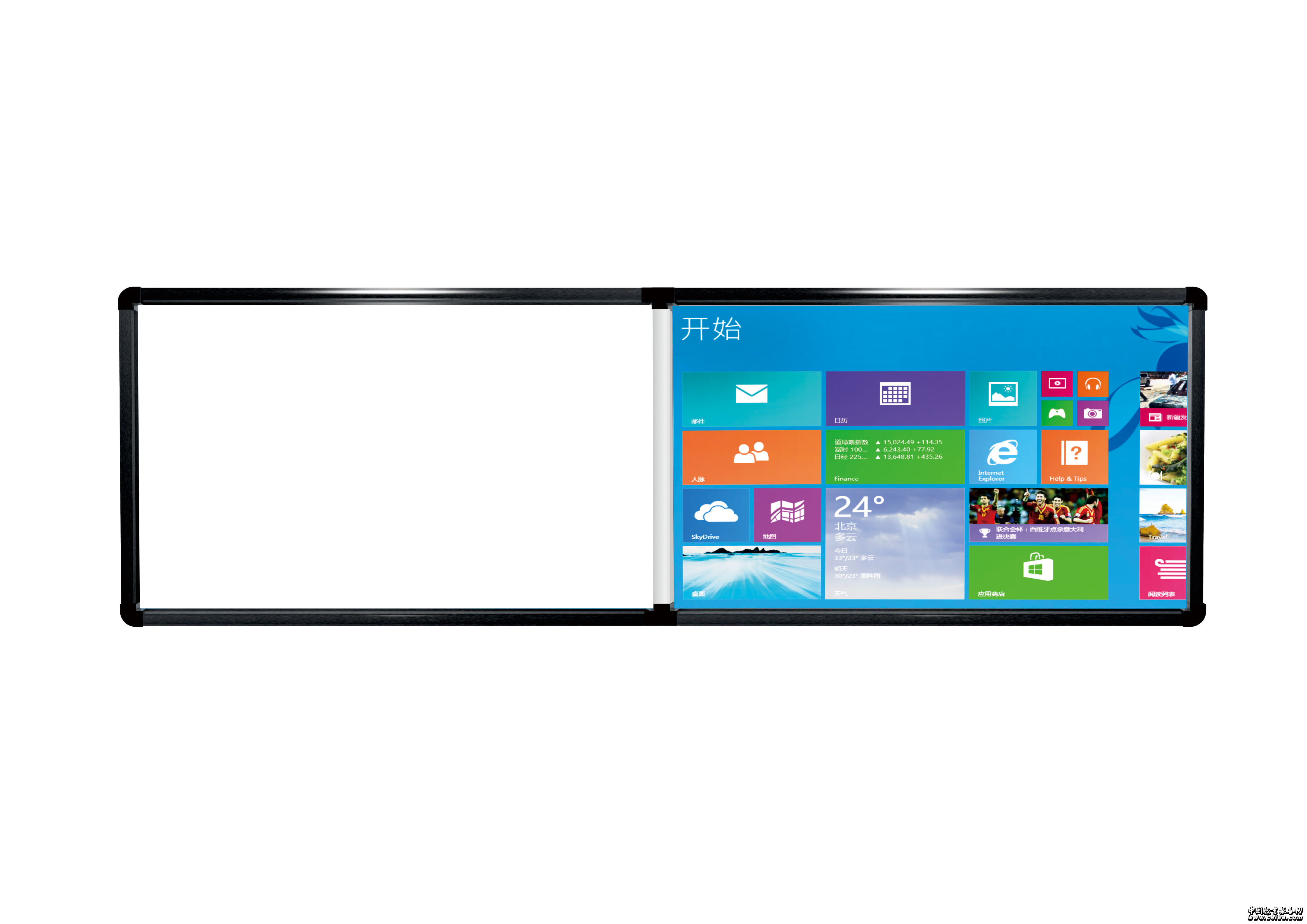 采用兩塊白板拼接方式,一部分作為普通教學書寫白板,一部分作為互動書寫投影白板,兩部分的材質是完全相同的互動部分可根據客戶需求定制不同尺寸。