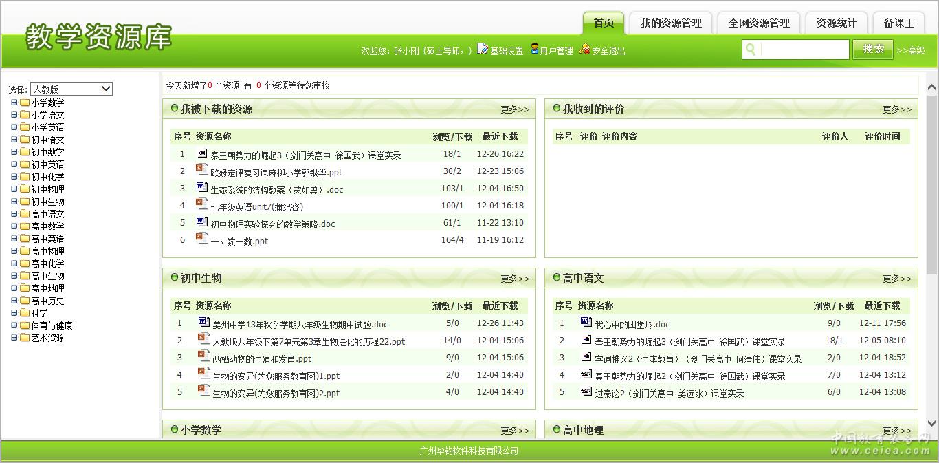 本系統是教學精品教案、學習指導為輔應的專業教育教學網站。下面以圖文的形式展現教學資源庫網站頁面和資源庫管理平臺。