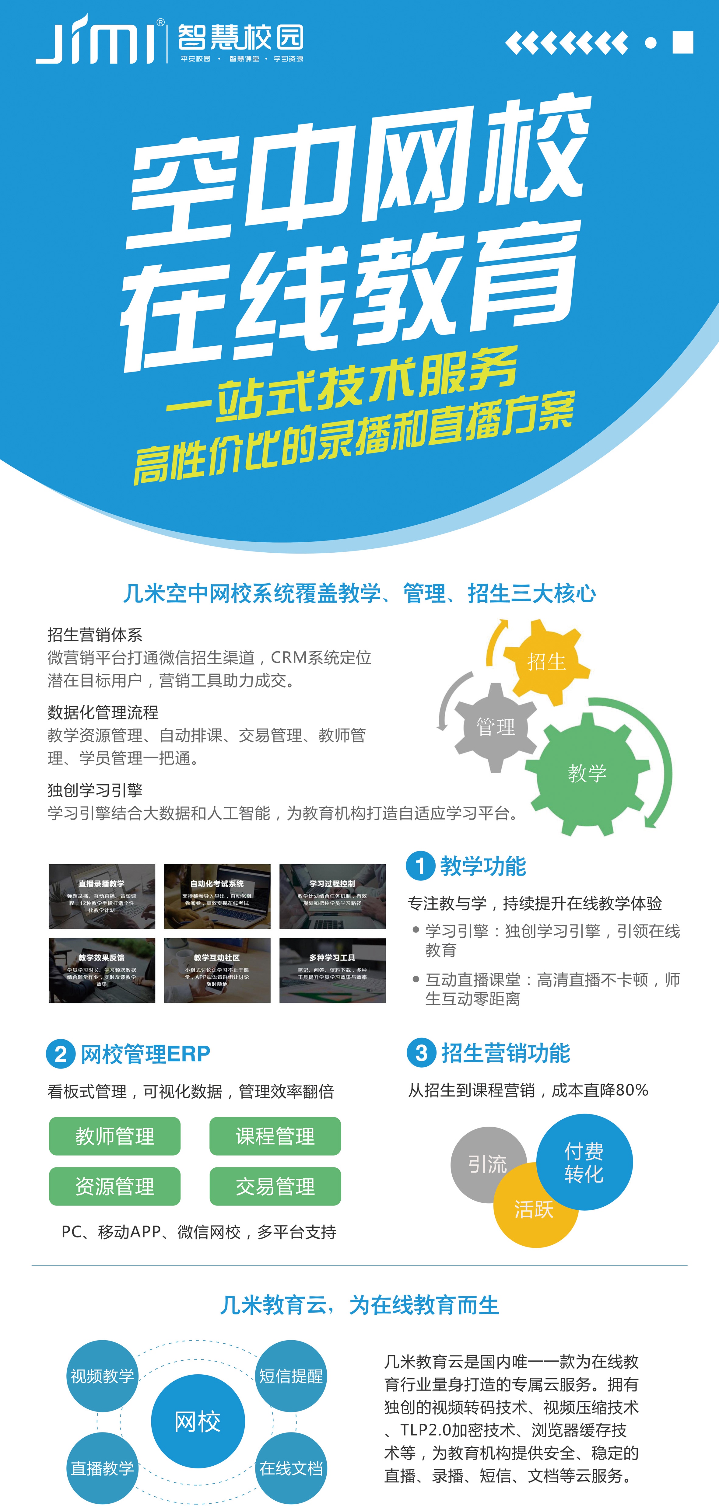 產(chǎn)品詳細(xì)介紹幾米空中網(wǎng)校系統(tǒng)覆蓋教學(xué)、管理、招生三大核心