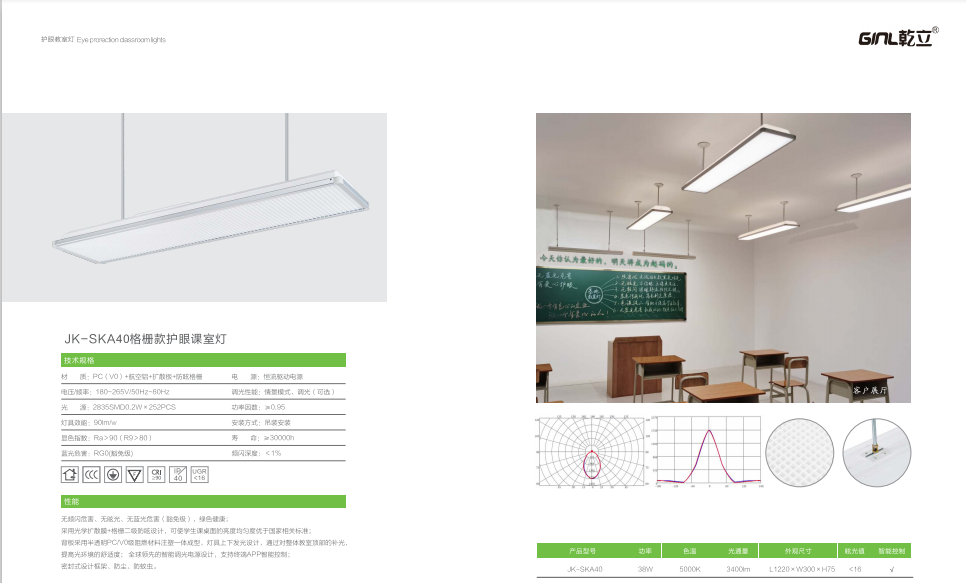 乾立格柵護眼教室燈-全護眼教育照明產品